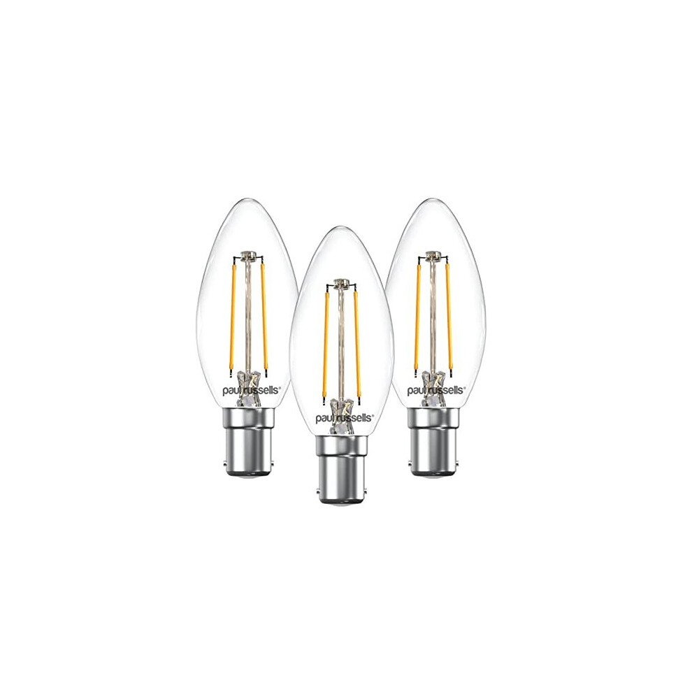 paul russells LED Candle Filament Bulbs - Pack of 3 ? 2.5W 20W Equivalent 200LM Lumen 2700K SBC B15D Small Bayonet Cap C35 Bulb ? Energy Saving Light