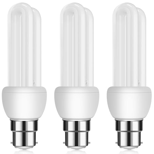 Ddlisu B22 Bayonet Cap Energy Saving Bulb 11W, 2U CFL Low Energy Light Bulbs, BC Compact Fluorescent Stick Bulbs, B2U Bayonet Light Bulbs Warm White 2700k, AC 220V, Not dimmable, 3Pack
