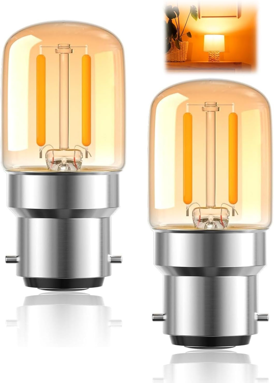 2Pcs B22 Pygmy Bayonet LED Light Bulbs, 1W Small Bayonet Bulb Cap BC Clear LED
