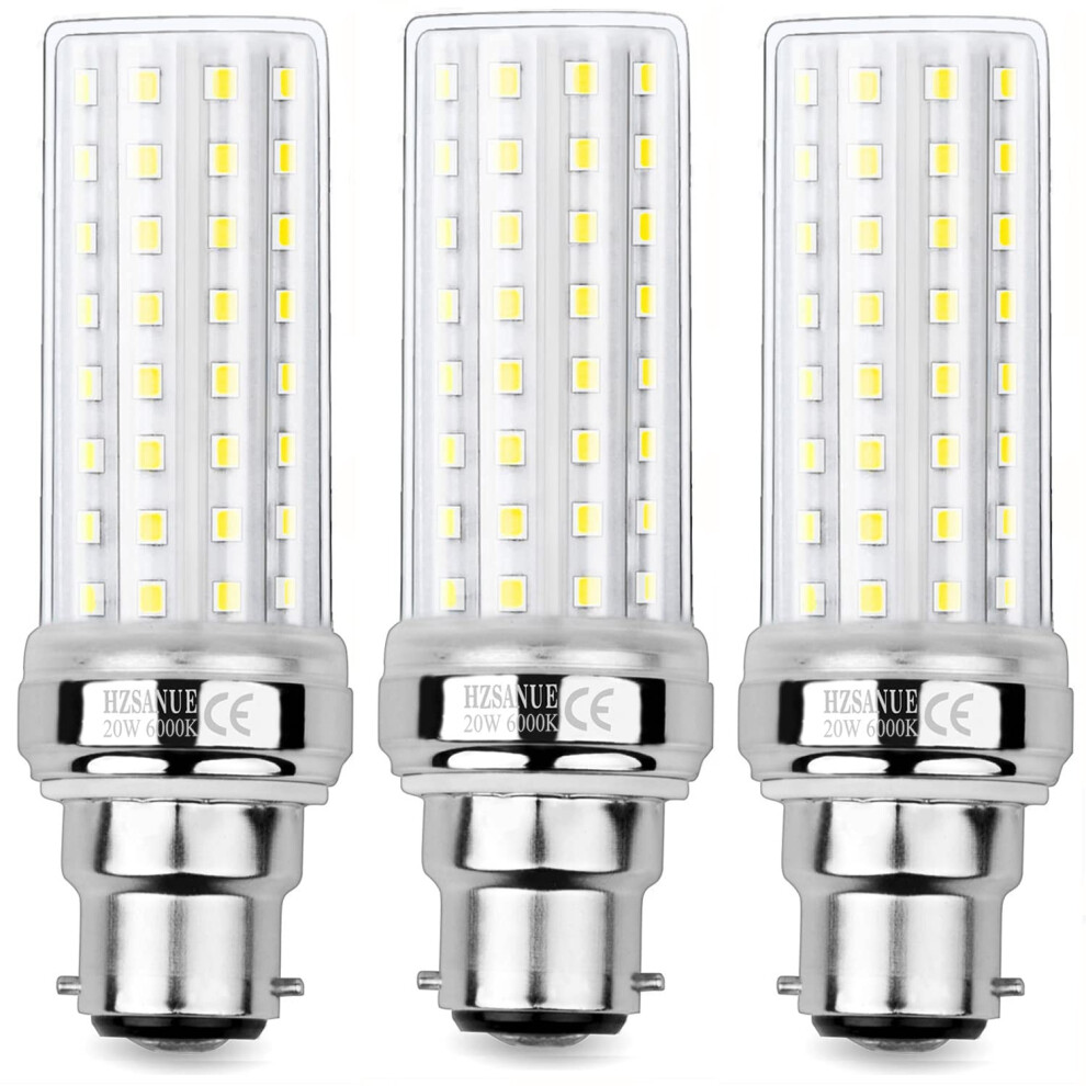 HZSANUE LED Corn Bulbs 20W, 6000K Daylight White, 2200Lm,B22 Bayonet Cap LED Light Bulbs,150W Incandescent Bulbs Equivalent,Pack of 3
