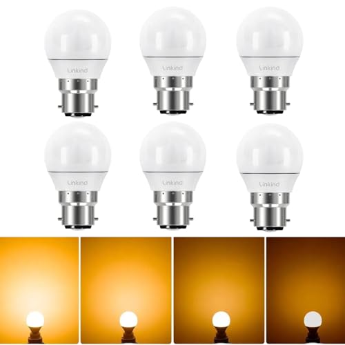 Linkind 4.2W Dimmable B22 LED Light Bulb, 40W Equivalent Golf Ball Light P45(G45) Bulbs, Soft White 2700K 470LM, Bayonet Cap, Not Suitable for 3-Way Dimmable Lamps, 6 Pack