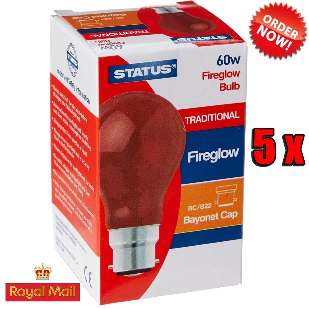 5x X Status 60w Fire glow Red Light Bulbs B22 Bayonet Cap Brooder Incubator Lamp