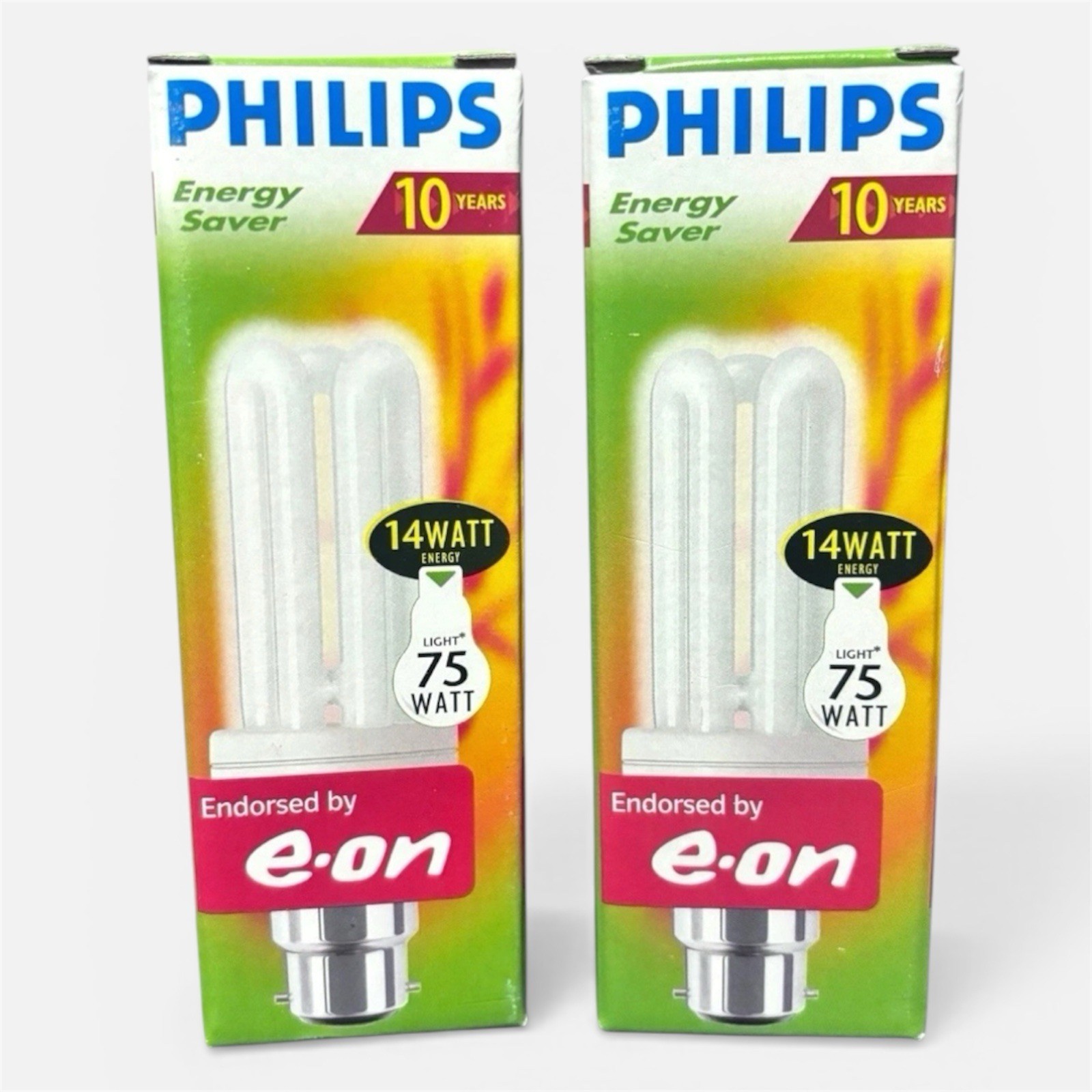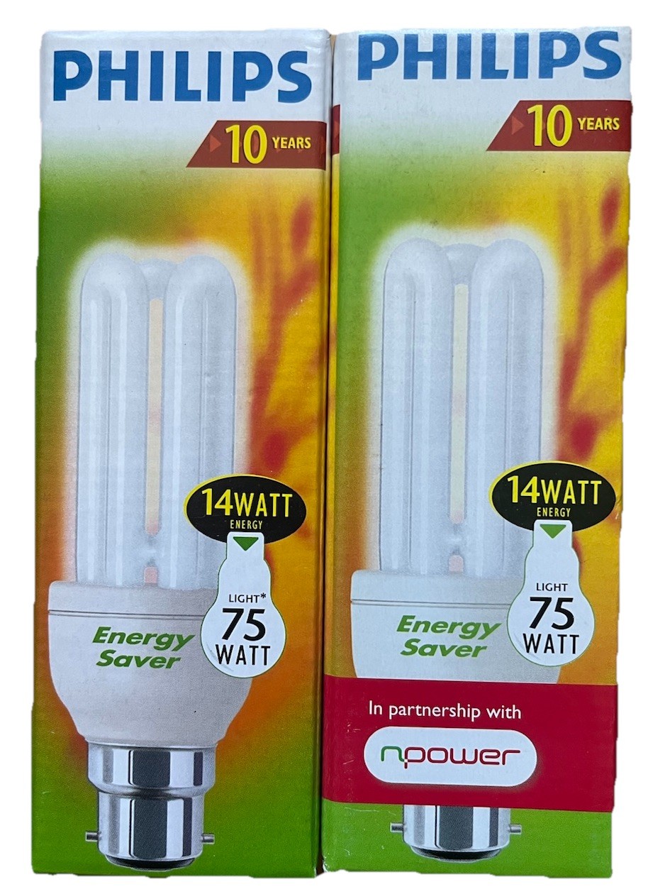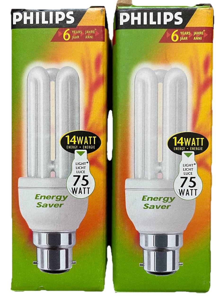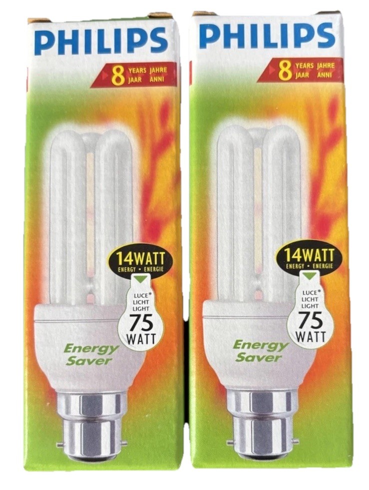 2 Pack Philips Energy Saving Light Bulbs 14W = 75W B22 BC 800 Lumen Bayonet Cap