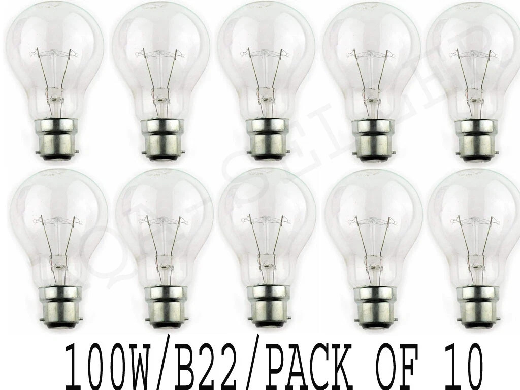 10x 100 Watt GLS CLEAR LIGHT BULBS BC B22 BAYONET CAP OLD STYLE 100w Pack