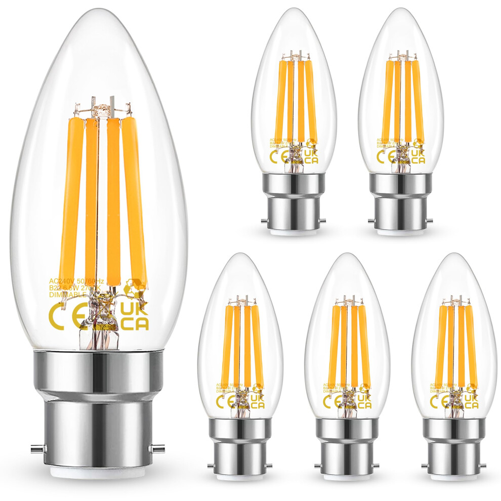 Century Light B22 Bayonet Cap Candle Filament Light Bulbs, Led 6.5W Equivalent 60 Watt, Dimmable Retro Warm White 2700K, Vintage Edison Energy Saving