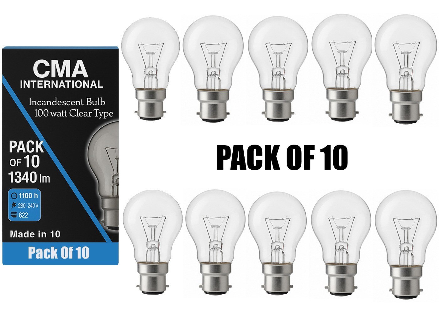 10x 100 Watt GLS CLEAR LIGHT BULBS BC B22 BAYONET CAP OLD STYLE 100w Pack FREE S