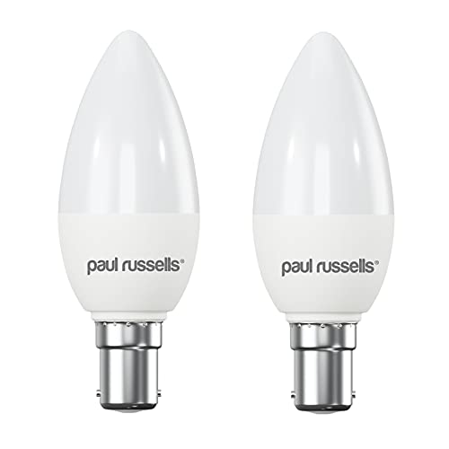paul russells LED Light Small Bayonet Cap B15, 40watt Equivalent, 4.9W 470LM LED Bulbs, 6500K Bright Daylight, Frosted C35 SBC Candle Energy Saving Non-Dimmable Chandelier Lightbulbs, Pack of 2