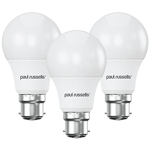 paul russells LED GLS Light Bayonet Cap BC, 60w Equivalent, 8watt 806LM LED Bulbs, 6500K Daylight Lamp, Classic Frosted A60 Standard B22 Energy Saving Non-Dimmable Large Globe Lightbulbs, 3 Pack