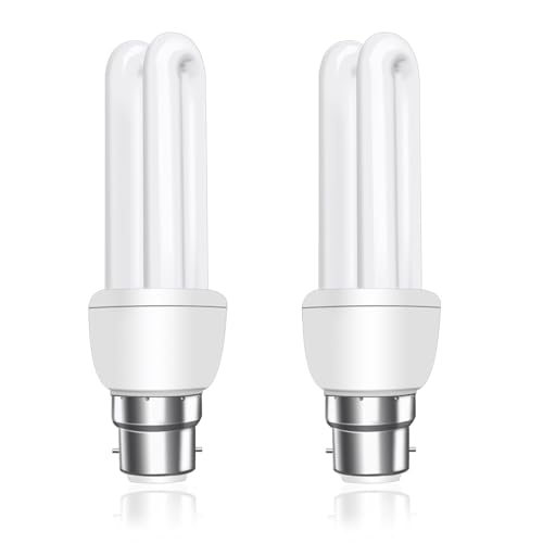 Akynite B22 Energy Saving Bulb 11W, Warm White 2700k, B22d Bayonet Cap, 2U CFL Low Energy Light Bulbs, BC Compact Fluorescent Stick Bulbs, 2pcs