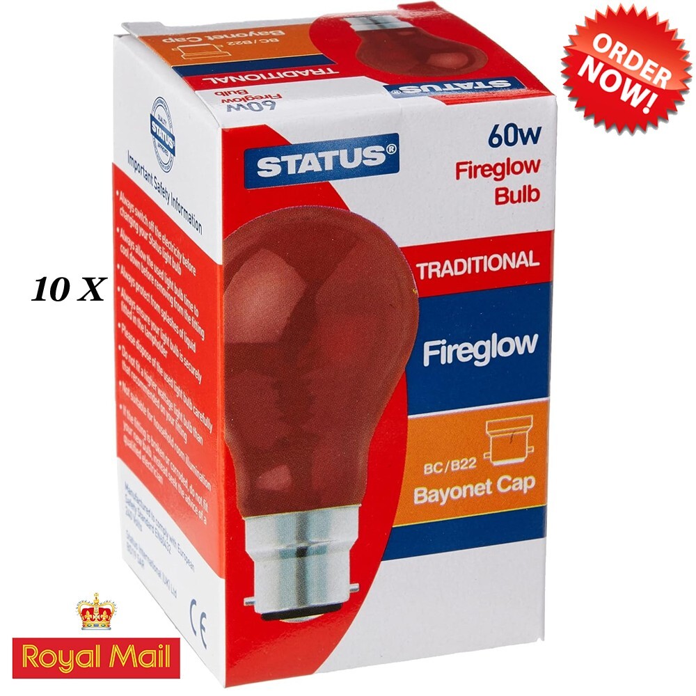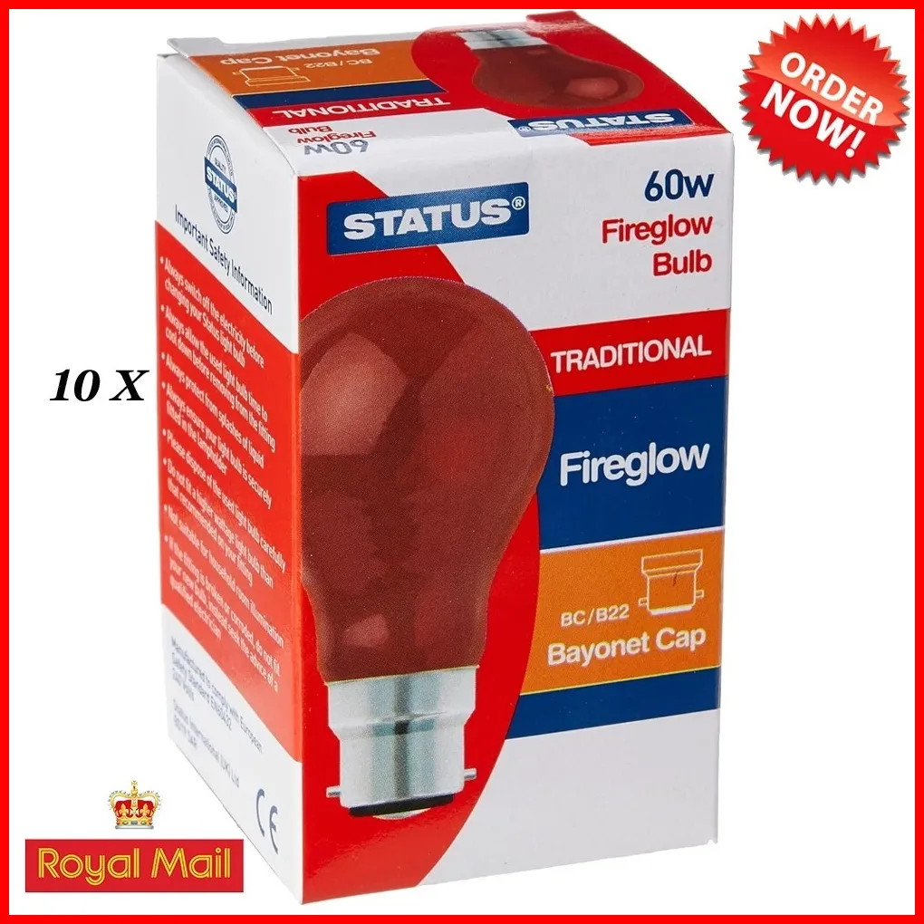 10 X Status 60w Fire glow Red Light Bulbs B22 Bayonet Cap Brooder Incubator Lamp