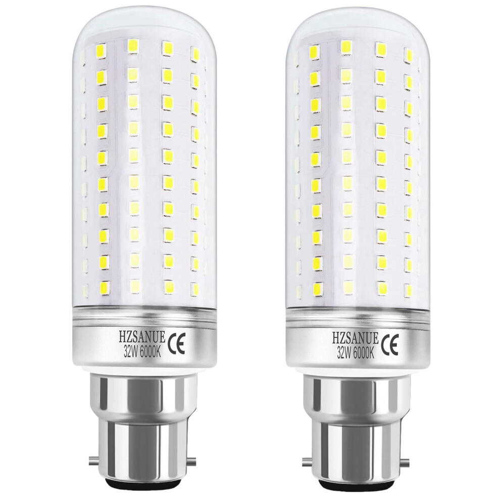 HZSANUE LED Corn Bulbs 32W, B22 Bayonet Cap LED Light Bulbs,6000K Daylight White, 3600Lm,240W Incandescent Bulbs Equivalent,No Dimmable,Pack of 2