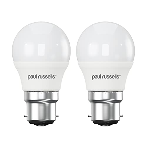 paul russells LED Light Bayonet Cap B22, 40w Equivalent, 4.9W 470 Lumens LED Bulbs, 2700K Bright Warm White, Mini Globe Frosted G45 BC Golf Ball Energy Saving (Not Dimmable) Lightbulbs, 2 Pack