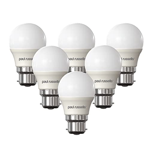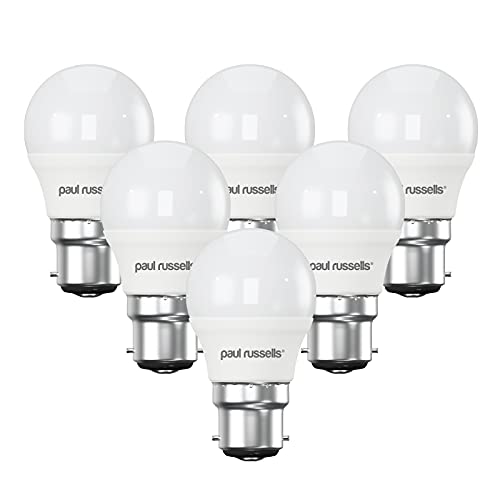 paul russells LED Light Bayonet Cap B22, 60w Equivalent, 6.5W 806 Lumens LED Bulbs, 2700K Bright Warm White, Mini Globe Frosted G45 BC Golf Ball Energy Saving (Not Dimmable) Lightbulbs, 6 Pack