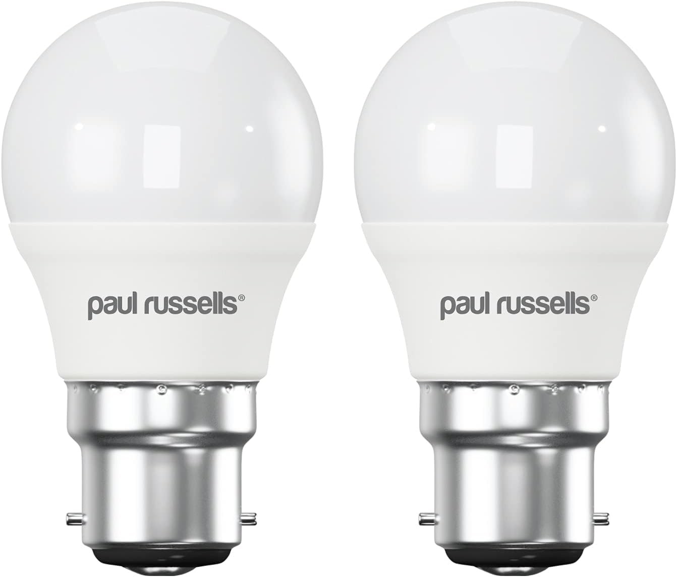 paul russells LED Golf Ball Light Small Bayonet Cap B15, 40w Equivalent Bulb, 4.9W 470Lumens LED Bulbs, 2700K Bright Warm White, Mini Globe Frosted G45 SBC Energy Saving (Not Dimmable) Lamps, 6 Pack