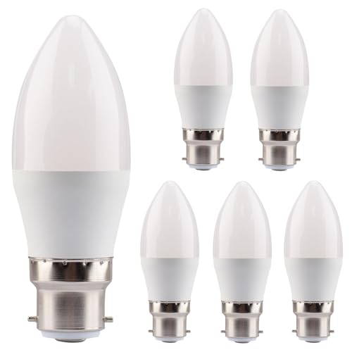 EXTRASTAR 4.9W B22 LED Bayonet Cap Candle Bulbs C37 Light Bulb, 41W Equivalent, Warm White 3000K Energy Saving, 480LM, Non-Dimmable, Pack of 6
