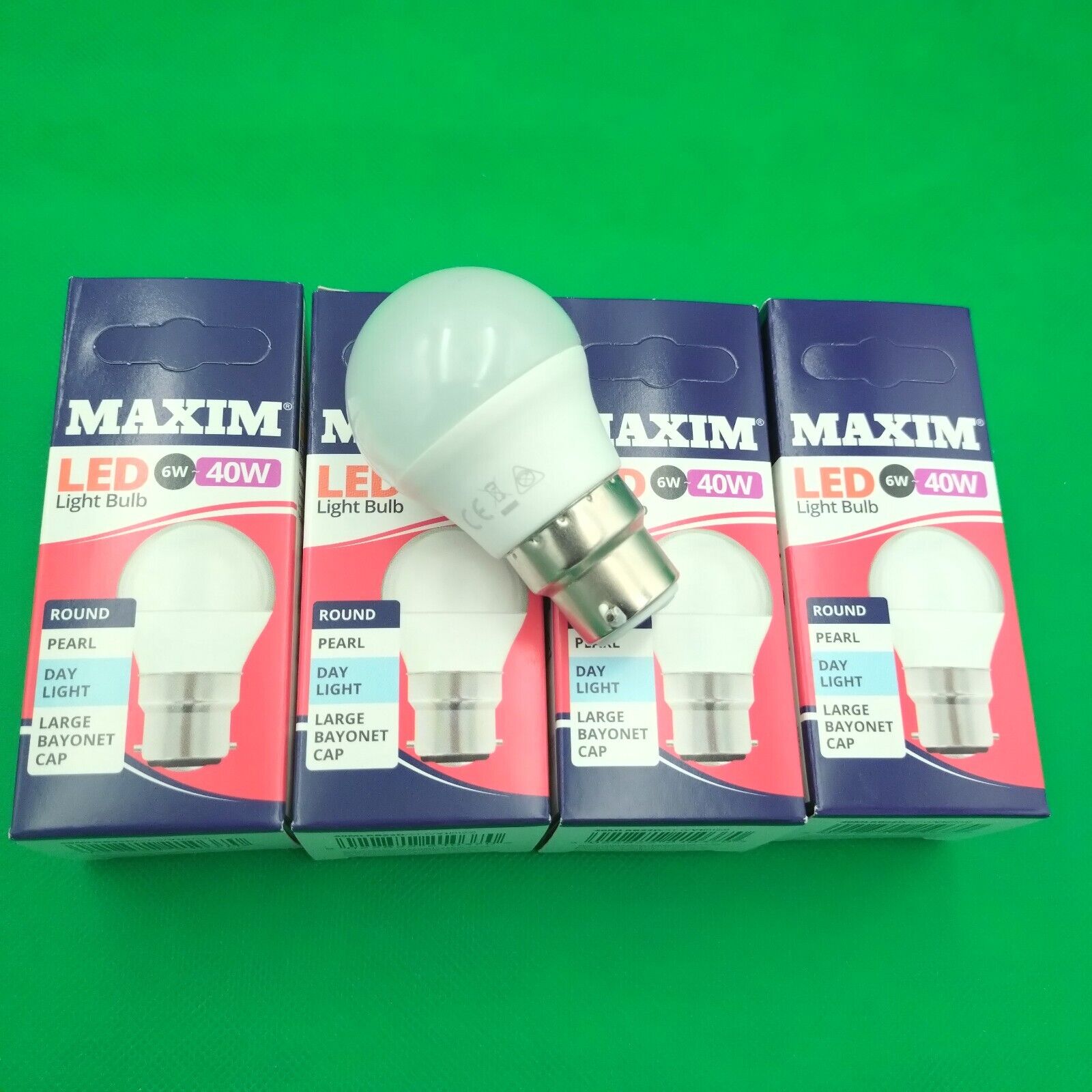 4x Maxim 6w = 40w LED Golf Ball Round Bulbs Lamps BC Bayonet Cap B22 Day Light