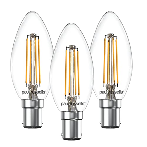 paul russells LED Candle Filament Light – 4.5W 40W Equivalent Replacement, 470LM Lumens, 2700K Warm White, SBC B15 Small Bayonet Cap C35 Bulbs – Bright Energy Saving Non-Dimmable Lamps - 3 Pack