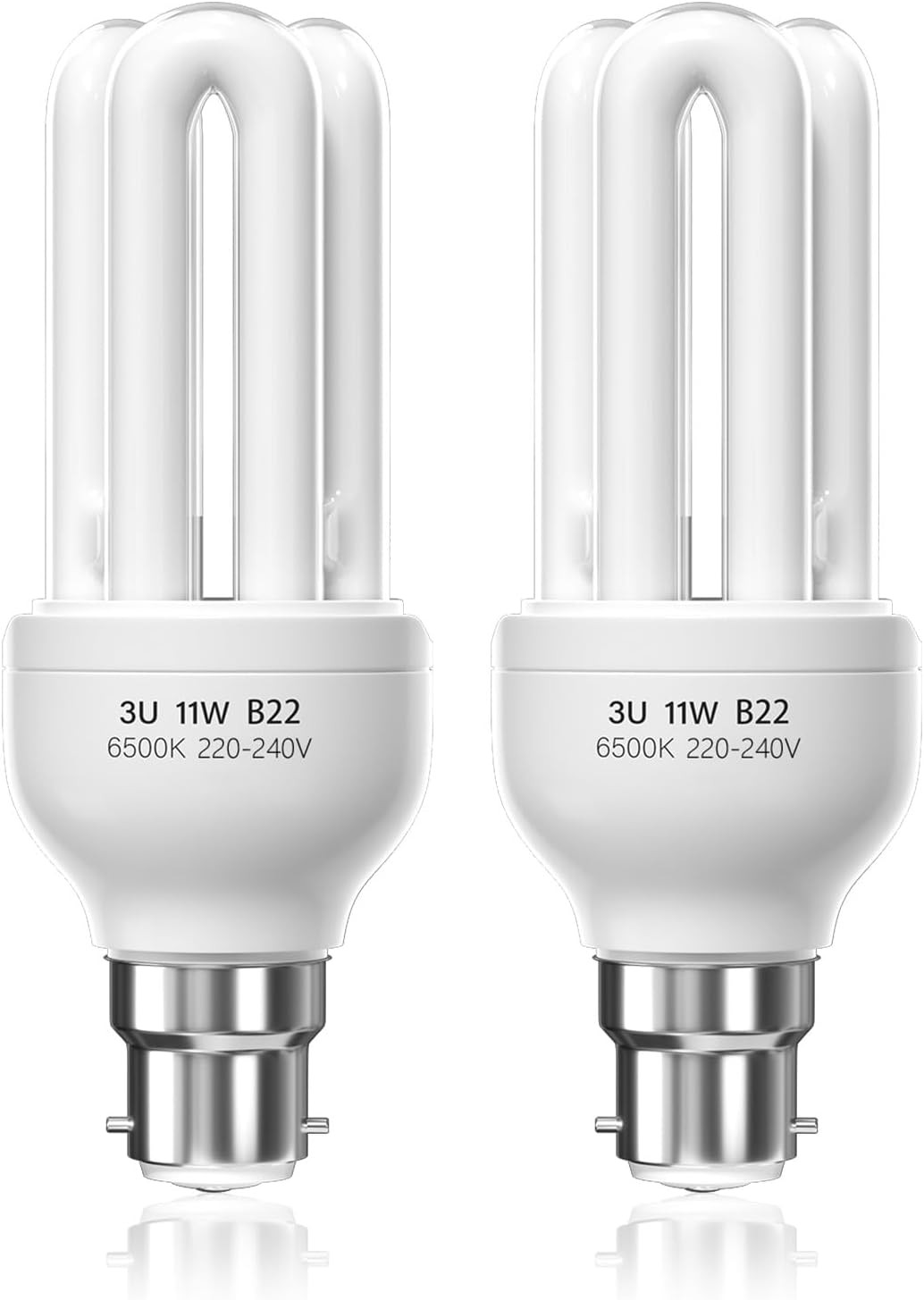 Akynite B22 Energy Saving Bulb 11W, Daylight White 6400k, B22d Bayonet Cap, 2U CFL Low Energy Light Bulbs, BC Compact Fluorescent Stick Bulbs, AC 220V, not dimmable, 2pcs