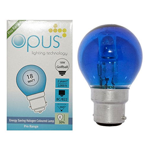 6 x Opus Blue 18W = 25W Coloured Golf Ball Light Bulbs Bc B22 Bayonet Cap