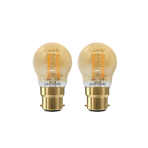 Paul russells LED Filament Golf Ball Light Bayonet Cap B22, 20W Equivalent G45 Bulbs, 2.5W 200LM LED 2200K Amber Lamps, Home Ceiling Chandelier Energy Saving Non-Dimmable Lightbulbs, 2 Pack
