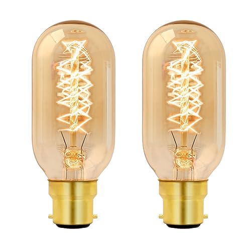 B22 Bayonet Vintage Light Bulb Dimmable, Warm White 2700K, Amber Glass, B22 BC Spiral Retro Filament Bulbs, T45 Antique Retro Light Bulb, Bayonet Decorative Light Bulbs for Ceiling, Chandelier, 2 Pack