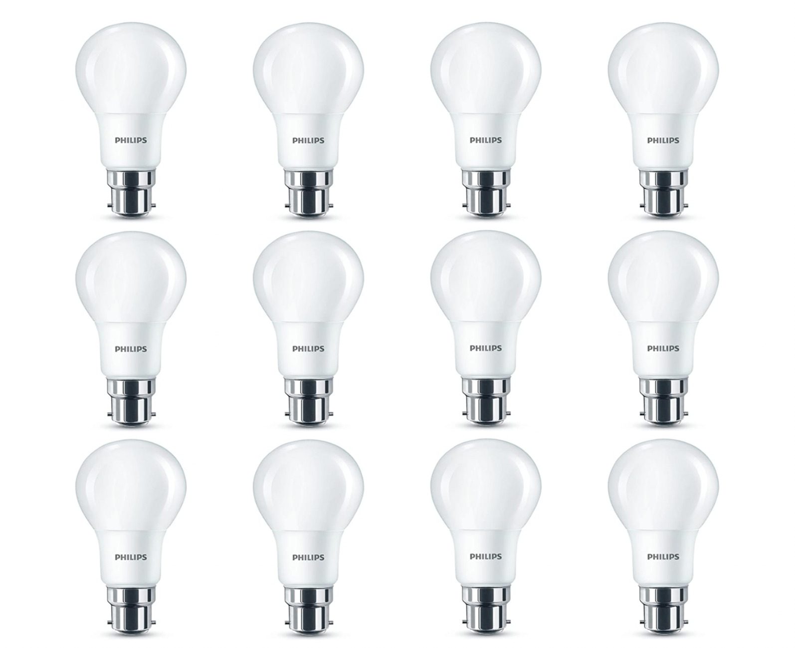 Philips 8W LED B22 Bayonet Cap Light Bulbs Frosted 60W Warm White 12 Pack