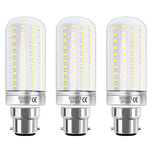 HZSANUE LED Corn Bulbs 26W, 6000K Daylight White, 2900Lm,B22 Bayonet Cap LED Light Bulbs,200W Incandescent Bulbs Equivalent,Pack of 3