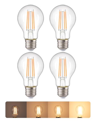 EDISHINE E27 LED Light Bulb Dimmable, A60 Vintage Edison Screw Bulb, Bayonet Light Bulbs, 6.5W 2700K Warm White 806LM, 300° Beam Angle, Energy Saving Filament Bulbs for Bedroom, Living Room, 4 Pack