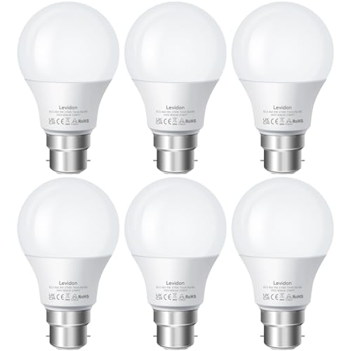 Levidon Bayonet Light Bulbs 60W Equivalent, Dimmable Warm White 2700K LED Bayonet Bulb, 9W 806LM Super Bright Bulb, B22 LED Bulbs, BC GLS Energy Saving Lightbulbs Bayonette