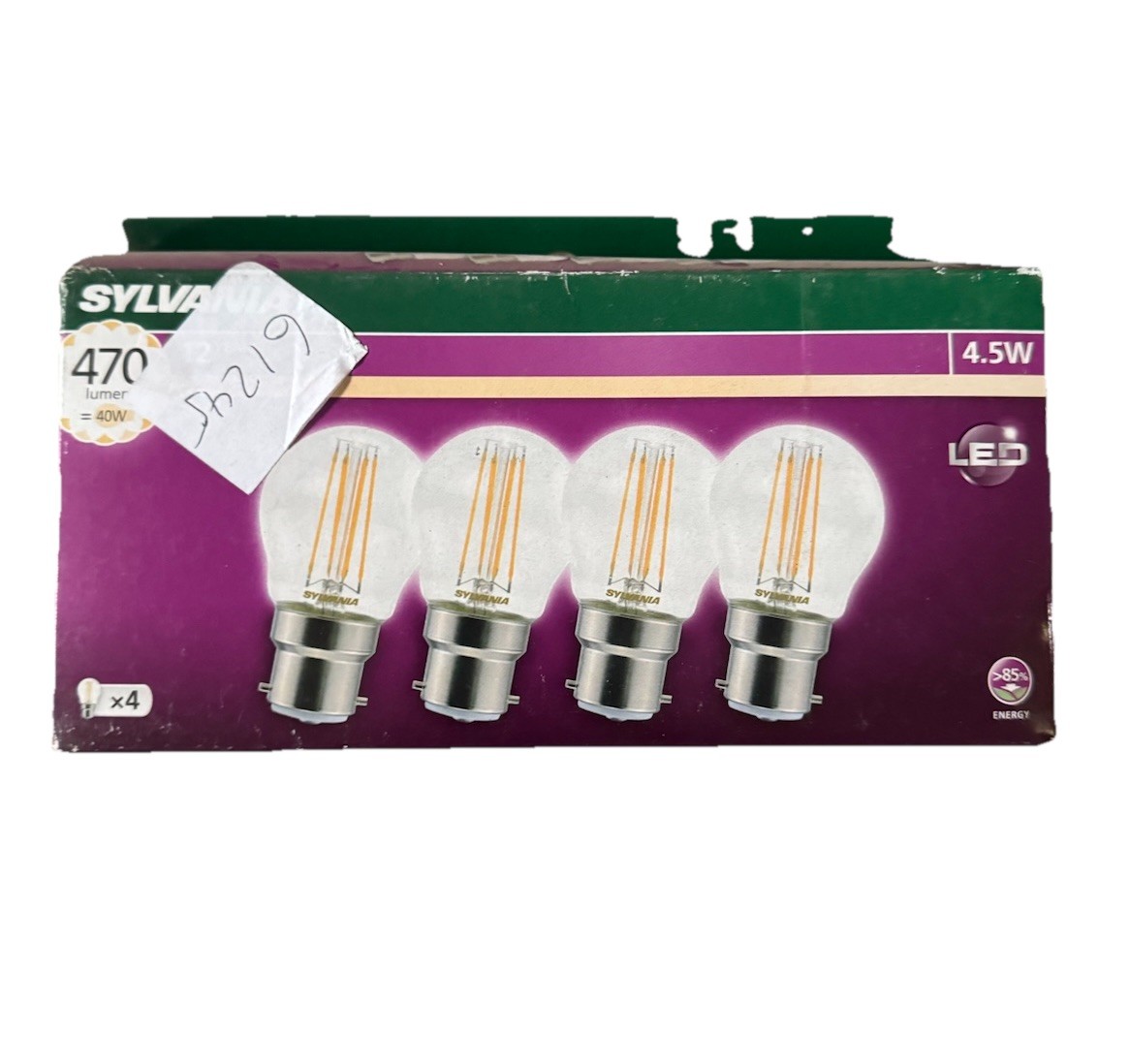 4PK Sylvania 40W RT Ball LED Bayonet Light Bulbs 12 Yrs 470Lumens Warm White