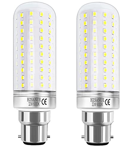 HZSANUE LED Corn Bulbs 32W, B22 Bayonet Cap LED Light Bulbs,6000K Daylight White, 3600Lm,240W Incandescent Bulbs Equivalent,No Dimmable,Pack of 2