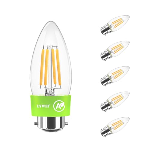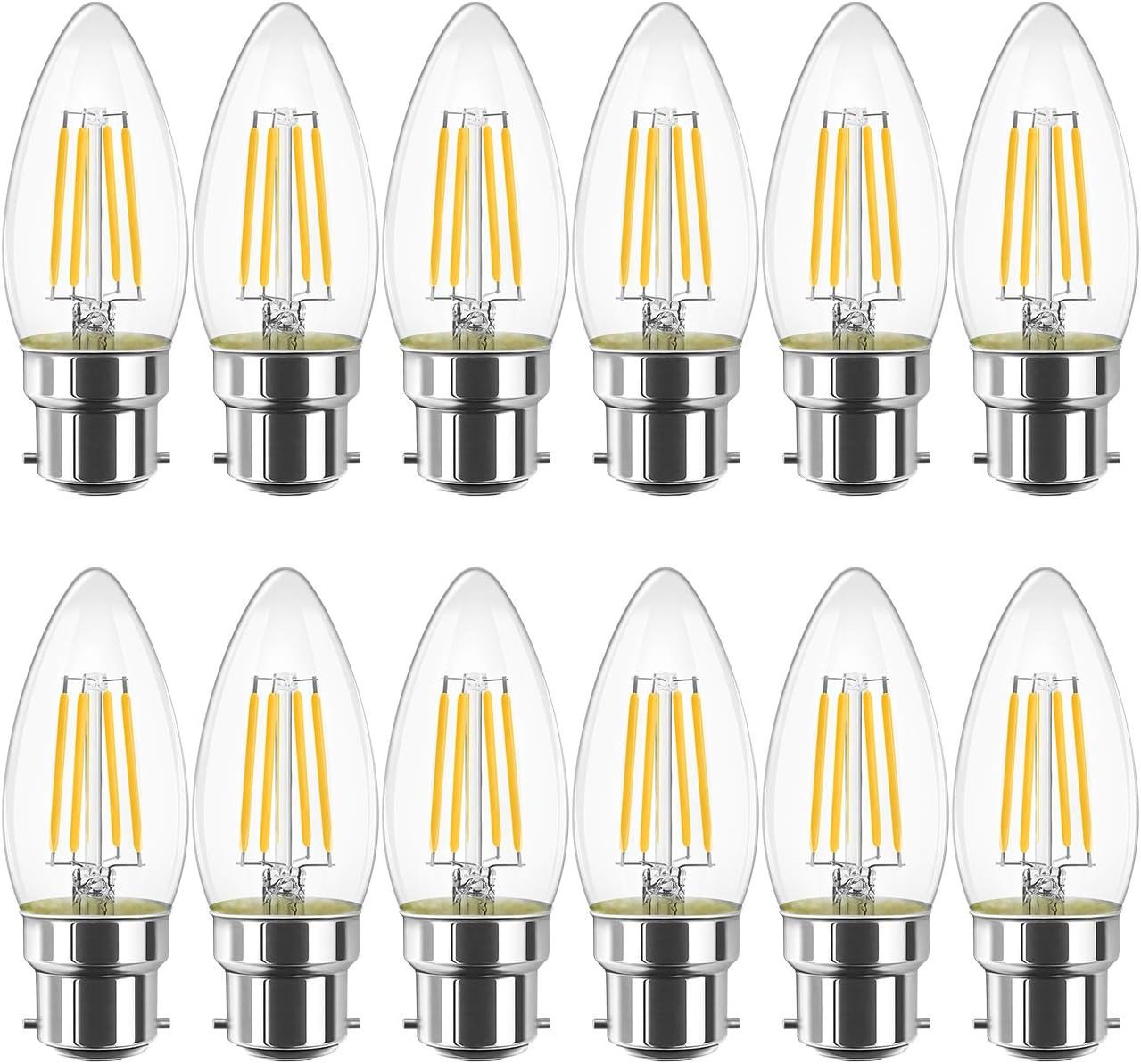 LVWIT B22 LED Filament Candle Bulb, C35 Bayonet Light Bulbs,470Lm, 4W Replace 40Watt,2700K Warm White Candle Bulbs for Chandeliers Fittings Non-Dimmable (12 PCS)