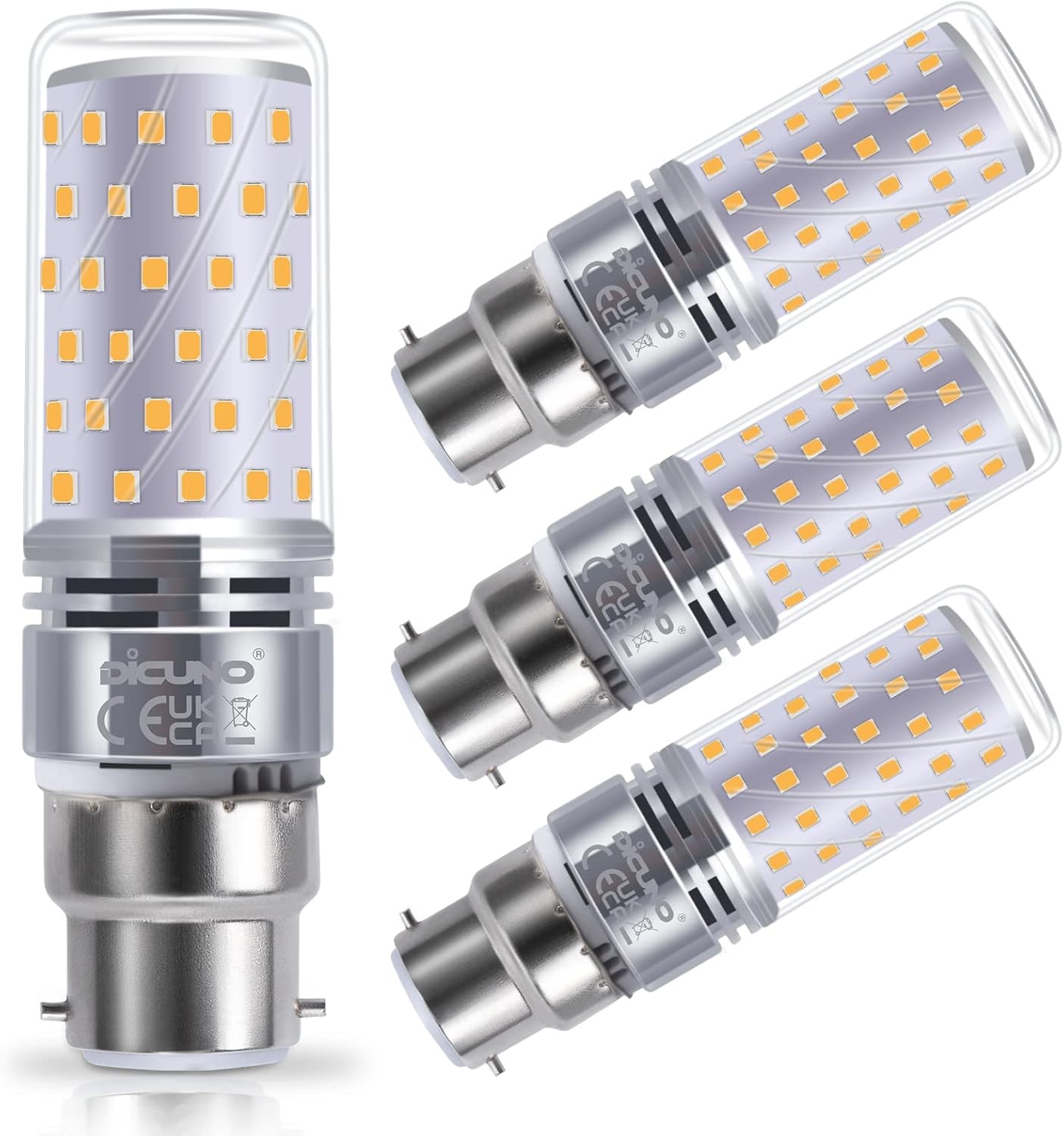 DiCUNO B22 LED Bulb 10W, B22 Bayonet Light Bulbs, Warm White 2700K, 130W Incandescent Equivalent, 1350LM Non-Dimmable Corn Light for Home Lighting, 230V, Pack of 2