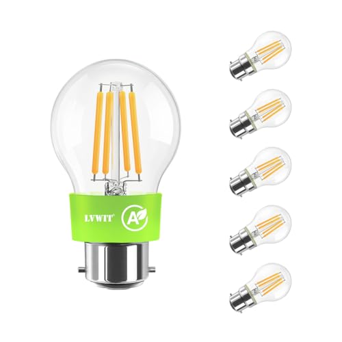 LVWIT B22 Bulb,Ultra-Efficient LED Filament Light Bulb,40W Golf Ball Bayonet Light Bulbs,2.2W Energy Efficient Light Bulb,A-Class Warm White Light Bulbs Bayonet,470LM,2700K,Non Dimmable (6,Clear)