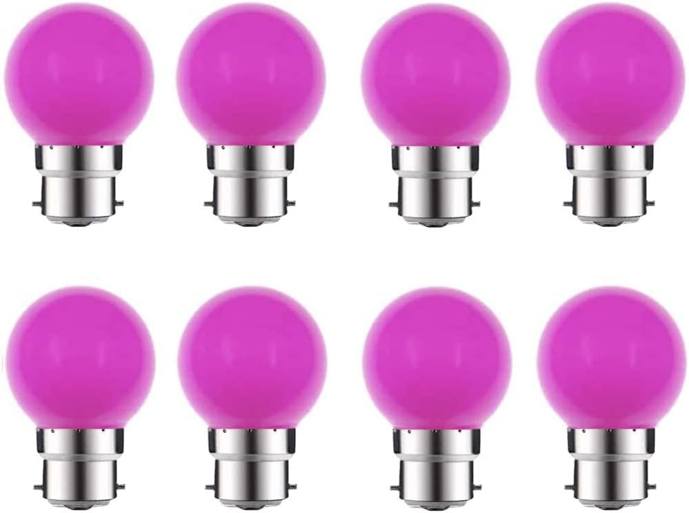 8 Pack B22 Bayonet Colored LED Light Bulbs 2W G45 Golf Ball Mini Globe Bulb Lig