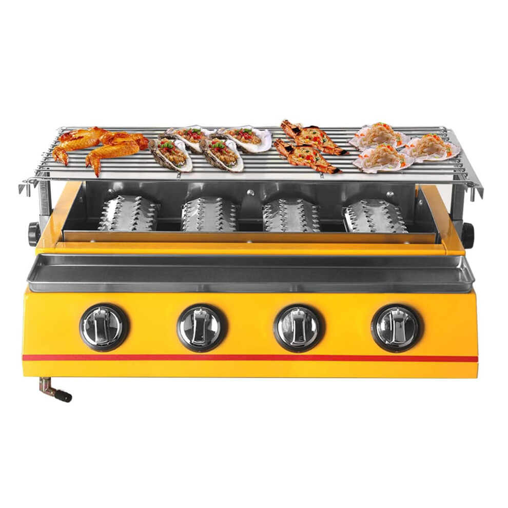 Portable Gas BBQ Grill 4 Burner Stainless Steel with Adjustable Height for Outdoor Camping Cooking
