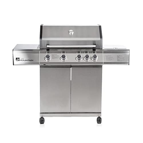 Fire Mountain 4 Burner Premier Plus BBQ - Gas, Stainless Steel Burners, Side Burner, Large Barbeque Grill, Includes Protective Cover, Barbeque Grill Outdoor, Perfect for Garden Parties