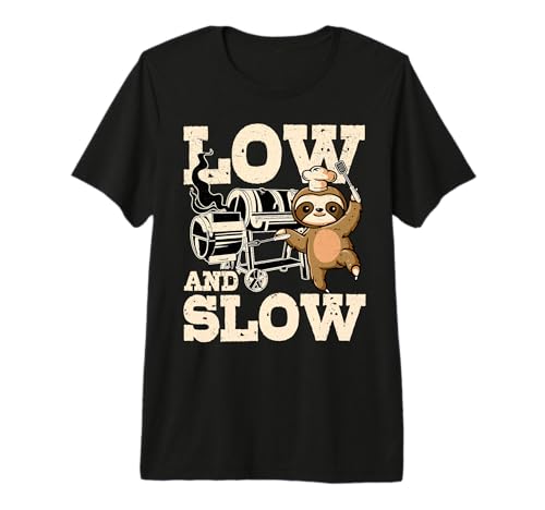 Mens Low and Slow Funny Sloth BBQ Smoker Dad Smoking Grill Premium T-Shirt