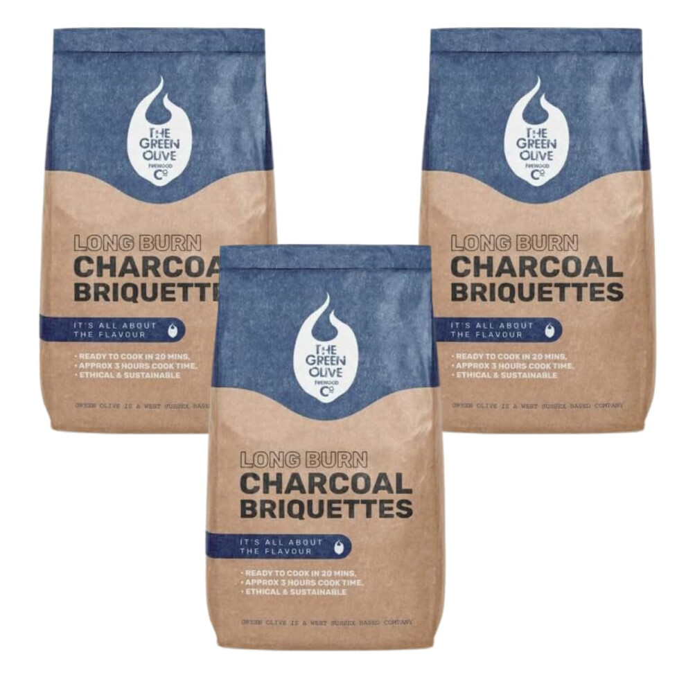 Green Olive Firewood - 3 x 4kg bags (12kg) Long Burn BBQ Charcoal Briquettes - Use for Charcoal Barbecues and Smokers - Natural and Sustainable - Qui