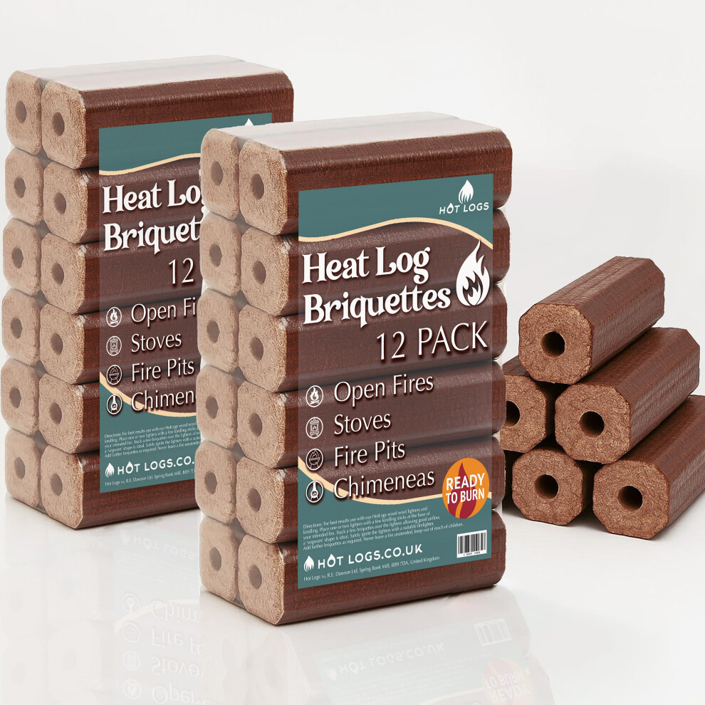 24 High Energy Hot A1 Compressed Firewood Logs (2x12)10kg Hot Burning Briquettes for Open fires, charcoal & kiln dried log, Wood Stoves, BBQ's, Log B