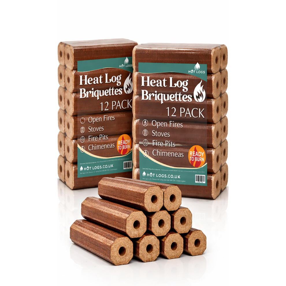 Log Barn 12 High Energy Compressed Heat Logs (1x10kg) Ultra Dry Hot Burning Firewood Briquettes for Open fires, Wood Stoves, BBQ's, Camping Fires, Fire Pits, Chimineas