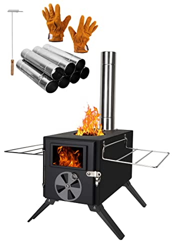 LAMA Camp Tent Stove, Portable Wood Burning Stove, with 6 Chimney Pipe for Cooking, Heating, Camping, Tent, Hiking, Fishing, Backpacking, BBQ, Black