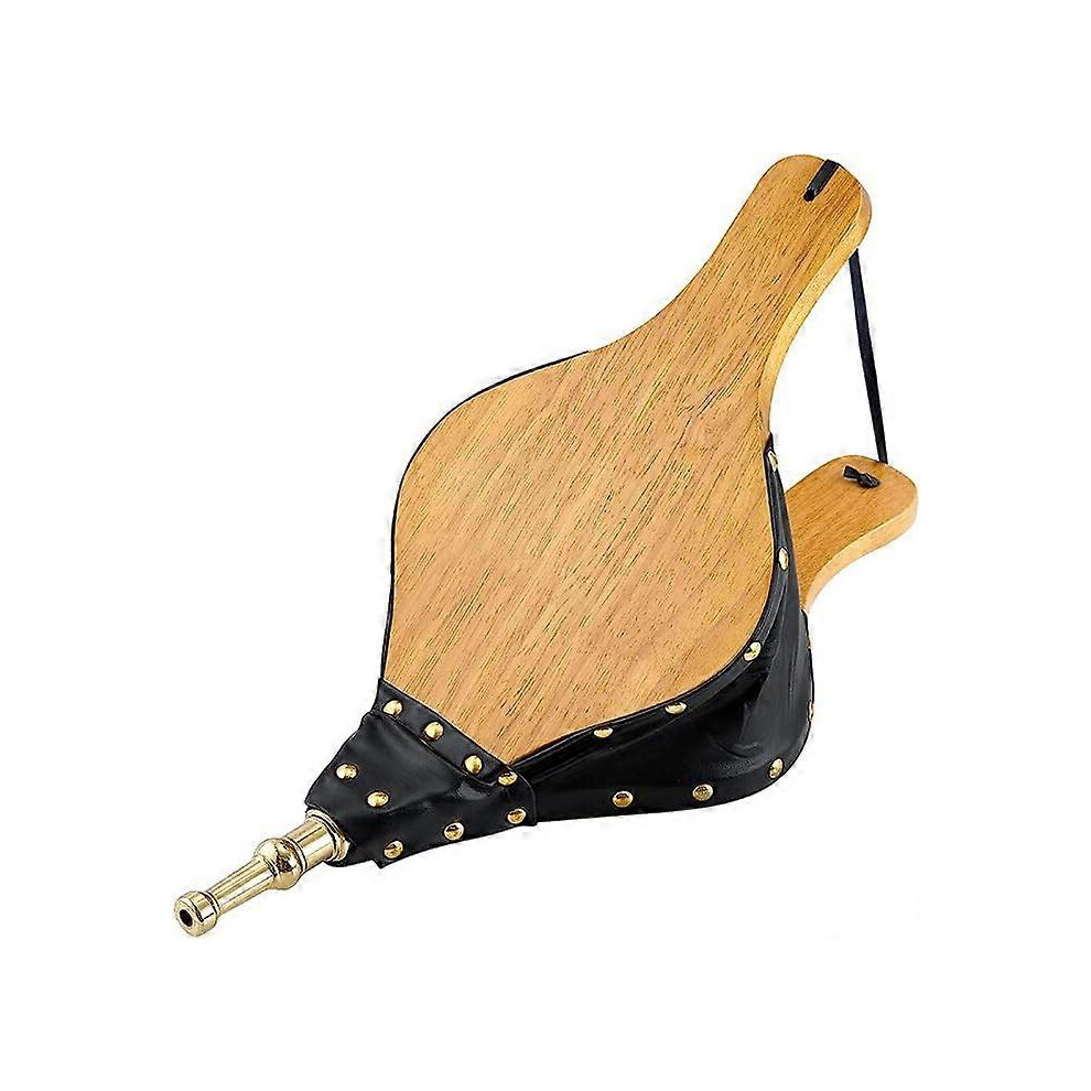 ZAWELIYO Fireplace Blowers Beautiful Wooden Air Blower For BBQ Grill Chimney, Hand Bellows Fire Tools For Barbecue, 15.6x7.1 inch Wood + PU Leather (gold tube)