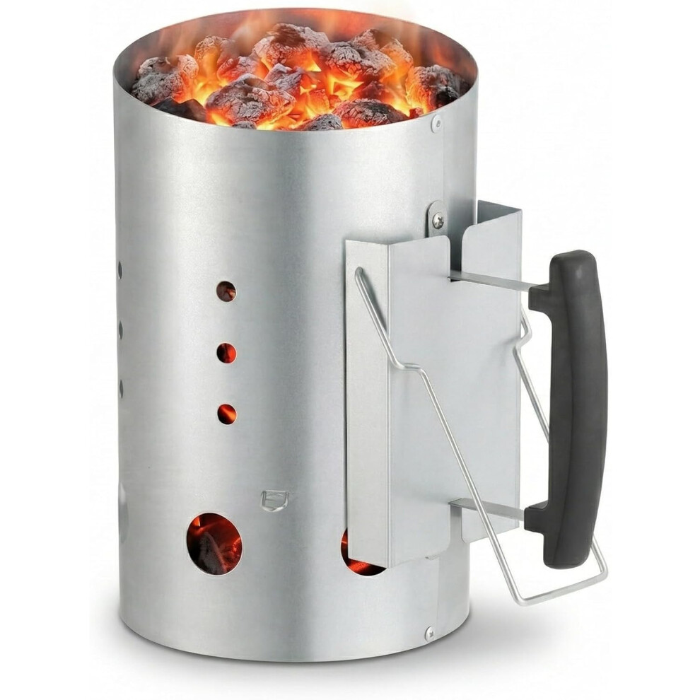 BBQ Coal Starter 19 x 27cm Charcoal Starter Chimney Heavy Duty Steel Barbecue Chimney Starter with Heat Insulated Handle Fast 20 Minute Ignition