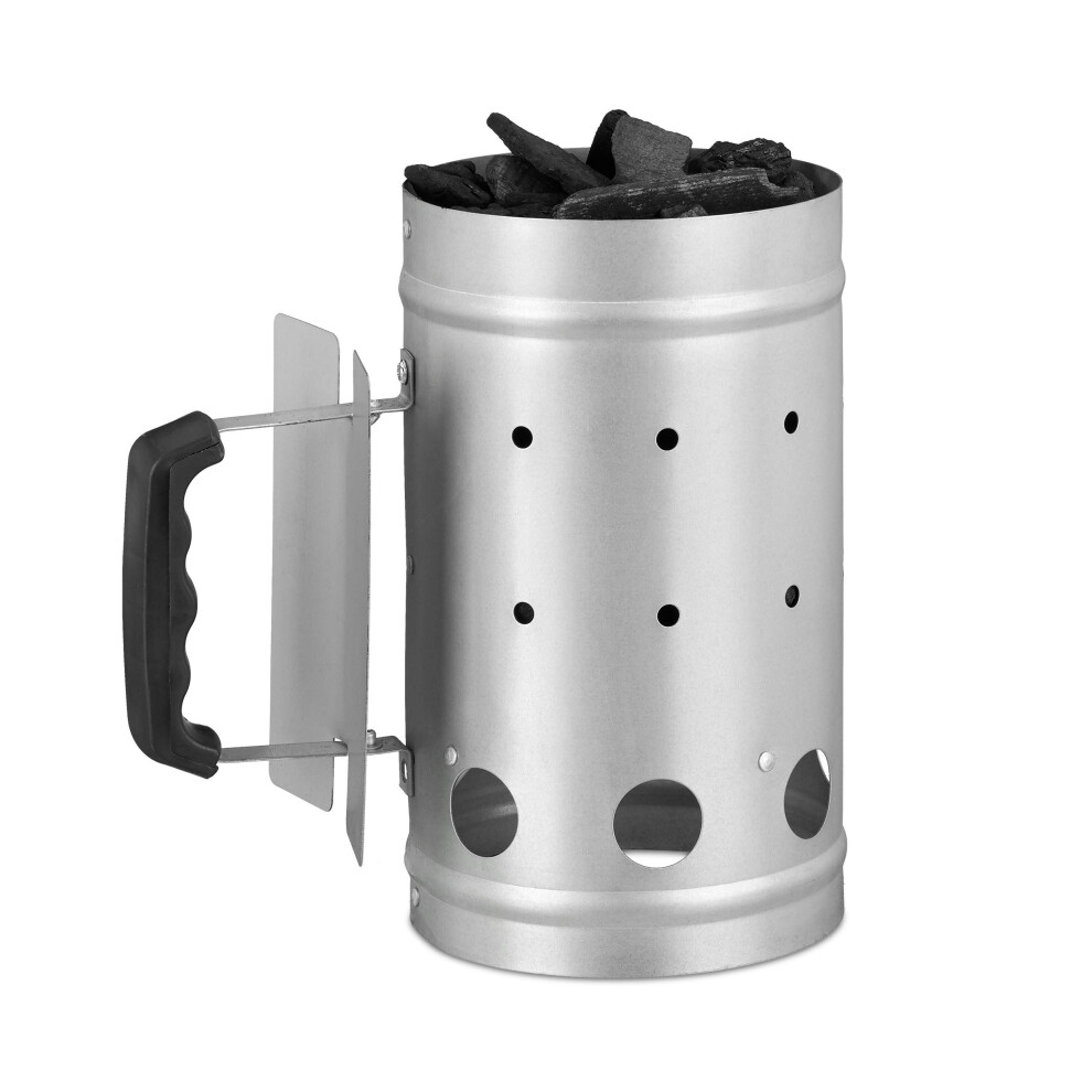 Relaxdays Charcoal Chimney Starter, Steel, BBQ Lighter, Stove, Grill, H x Dia: 27 x 16 cm, Grill Ignition, Silver