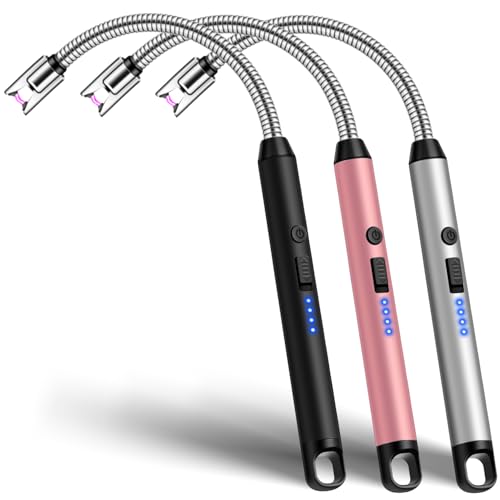 3 Pcs Electric Candle Lighter USB C Rechargeable, Long Reach BBQ Lighter with 360° Flexible Neck for Candles, Barbeque, Gas Stove, Gifts for Her, Mom
