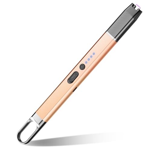 Electric Candle Lighter Long Reach USB Rechargeable BBQ Lighter for Candles, Flameless and Windproof Plasma Arc Lighters for Grill, Camping & Kitchen Use (Champagne Gold)