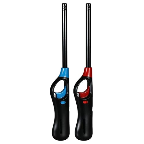 BML Pack of 2 Long Reach BBQ Lighter Refillable Gas Lighter Windproof Adjustable Flame Kitchen Candle Hob Grill Fireplace Camping Lighter with Gas Canister Assorted Colours