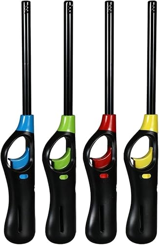 BML 4 Pack Candle Lighter Long Reach Utility Lighter Refillable Gas Lighter Windproof BBQ Lighter Adjustable Flame Safety Lock for Kitchen Stove Candles Fireplace Camping (Assorted Colours)