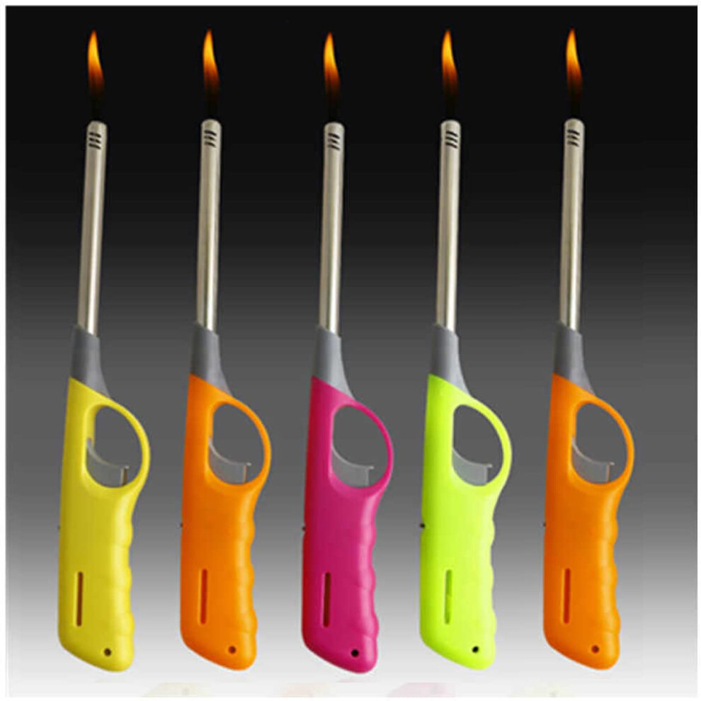 | (Pack of 5 - BBQ Lighter) Refillable Gas Safety Assorted Colours. Ideal for Kitchen, Barbecue, Camping, Cooking, Fireworks. Good Gas Lighters for